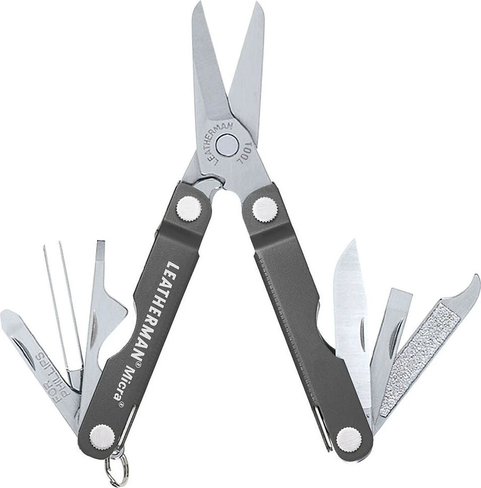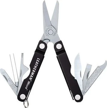 The Leatherman Micra is our most popular mini-tool with anglers, hobbyists and those who can appreciate the best spring-action scissors around. Personal care features that fit on your key chain are just part of what makes the Micra truly unique. Ten useful tools are packed into this tiny, lightweight Leatherman. Perfect for a tackle box, pocket, purse, fanny pack, or sewing kit, the Micra makes a great gift.