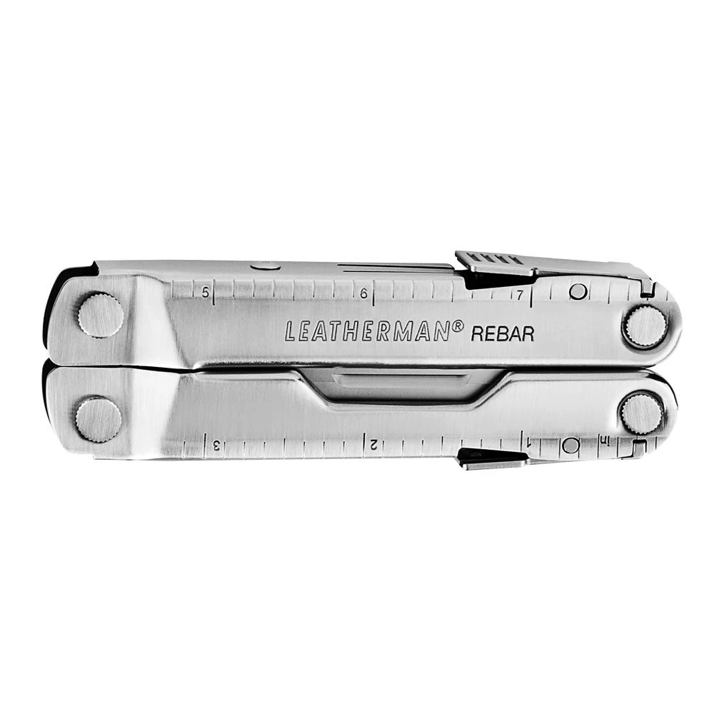 The Leatherman Rebar packs 17 tools into one compact, rugged stainless steel body. Handy, outside-accessible blades are easy to open. This tough stainless steel multi-tool is rugged enough for any task.