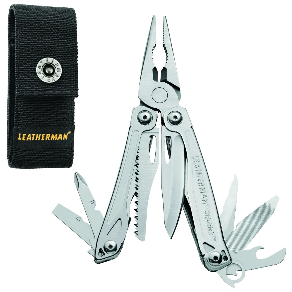 The Leatherman Sidekick Multi-Tool packs 14 tools into one compact, rugged stainless steel body. Handy, all locking outside-accessible blades are easy to open with just one hand, and contoured handles make this multi-tool comfortable to hold, no matter how tough the task.