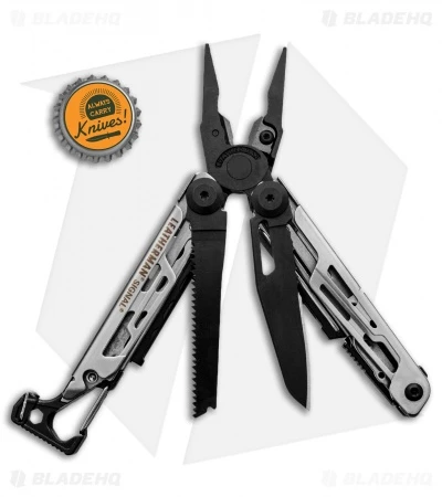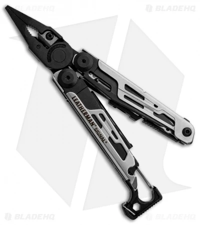 This Silver & Black Signal model features a stylish two-tone design with a silver handle and black tools. The Signal has several tradition Leatherman tools and adds key survival-oriented tools like a fire starter ferro rod, diamond sharpener, and safety whistle. It has an outside accessible, one-hand opening 420HC steel blade with a partially serrated edge. Both the blade and saw benefit from a liner lock tab. The Signal has a removable pocket clip and a simple slider to lock the handle in the closed position.
