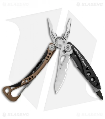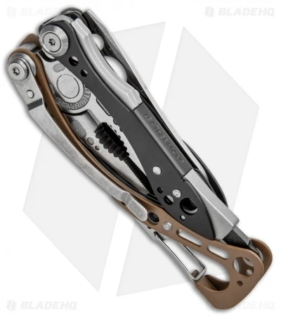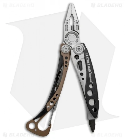 This Skeletool model comes in a coyote tan color. The Skeletool multi-tool from Leatherman features strong pliers, a liner locking 420HC steel blade and large bit driver, with an extra bit fit snugly in the handle. Includes a removable pocket clip and carabiner/bottle opener.