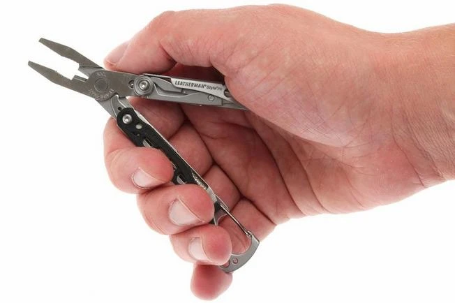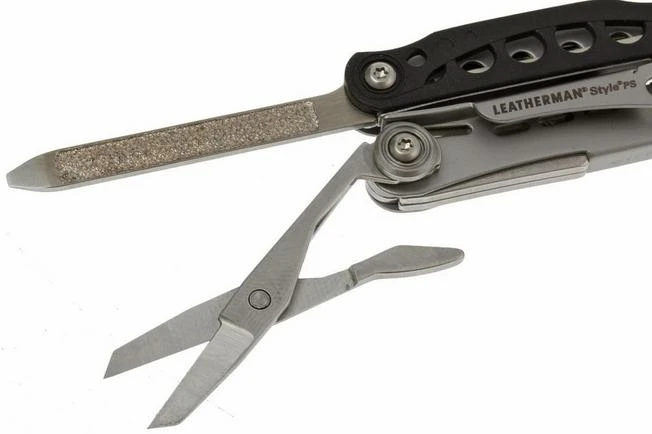 In addition to the large full-size multi-tools and more compact tools, Leatherman also makes multi-tools that are so small they can be carried on a keyring. The Style PS is small and equipped with a carabiner. The holes in the design make that it is also very light. It only weighs 46 grams. In addition to its attractive look, the Style PS also stores eight tools. The Style PS has a pair of pliers with wire cutter. Besides that a pair of scissors and obviously many more useful functions.