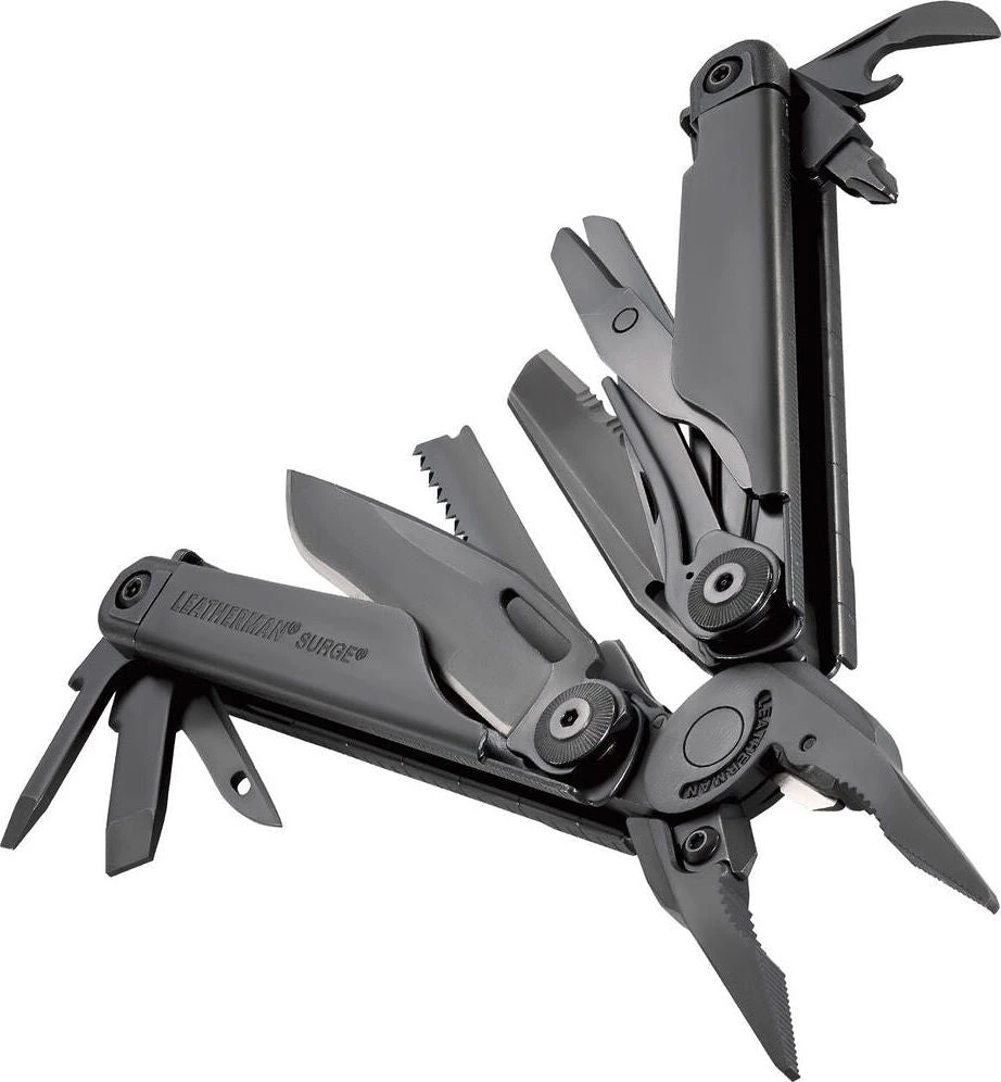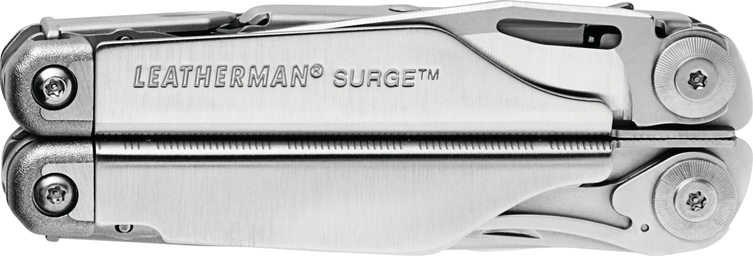 The Leatherman Surge is one of our two largest multi-tools; a real powerhouse, built with our largest pliers, longest multi-tool blades and easy-to-use locks. A unique blade exchanger, replaceable premium wire cutters and four outside-opening blades give you quick access to the tools you use most. The Surge was built for tough jobs and the hands that do them.